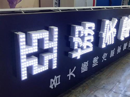 正面發光字+黑色金屬背板+上下led發光燈條製作